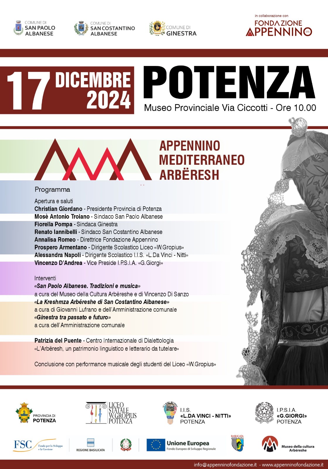 Il progetto A.M.A. – Appennino Mediterraneo Arbëresh è finanziato nell’ambito del programma “Patrimonio Culturale Intangibile” della Regione Basilicata, giunge alla sua seconda annualità e coinvolge i comuni di San Paolo Albanese, in qualità di capofila, Ginestra e San Costantino Albanese. Un progetto che vede legate le tre comunità dal patrimonio arbëresh che appartiene alla loro storia e cultura, e che oggi tende ad integrare tradizione e contemporaneità. Le attività sono realizzate in collaborazione con Fondazione Appennino, impegnata a sperimentare modelli di sviluppo locale in particolare nelle aree interne, con l’obiettivo di ridare centralità al Mediterraneo e al suo legame con l’Europa attraverso la dorsale Appenninica. Il programma si concluderà a fine dicembre, portando eventi sia nei tre comuni arbëresh che nelle scuole di altre realtà territoriali, spaziando dalle contaminazioni musicali alla ricerca e valorizzazione dell’identità culturale delle comunità.