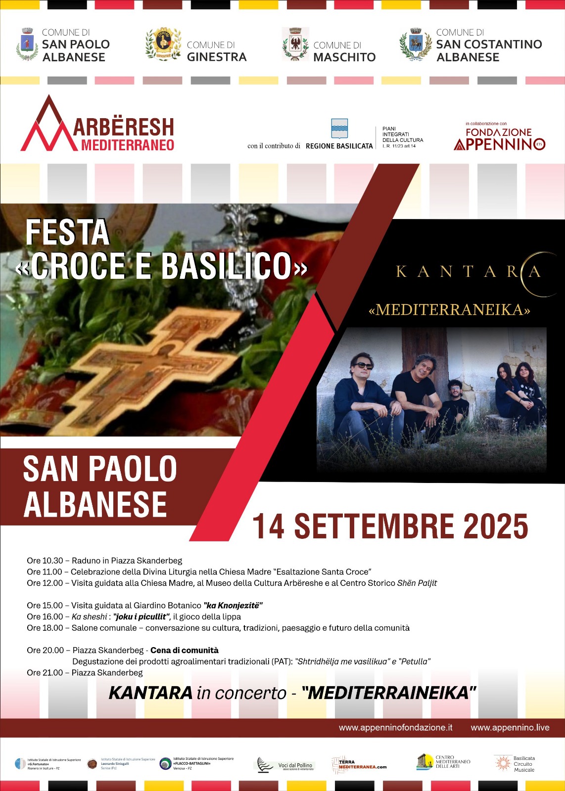 Domenica 14 settembre si parte dunque proprio da San Paolo Albanese, che rinnova la sua tradizionale festa “Croce e Basilico”, nell’abito della quale il progetto “Arbëresh Mediterraneo” si innesta.