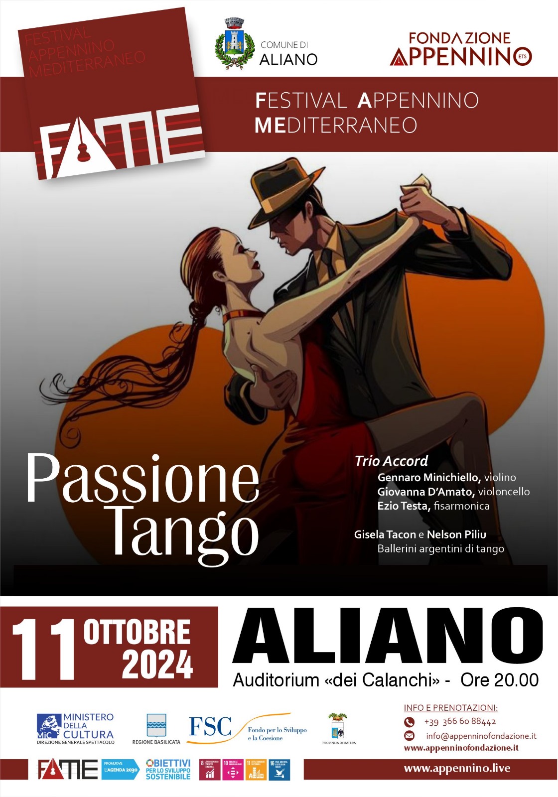 Passione tango vi aspetta venerdì 11 ottobre 2024 presso la Sala Convegni “dei Calanchi” ad Aliano (MT) con inizio alle ore 20.00.