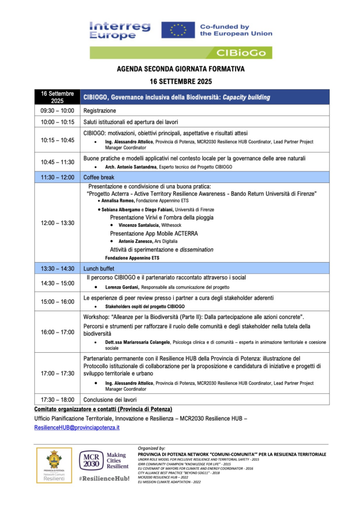 Il 16 settembre 2025 alle ore 12.00 al Museo Archeologico Provinciale di Potenza, nell’ambito della seconda giornata del percorso formativo CIBIOGO – Governance inclusiva della biodiversità, organizzato dalla Provincia di Potenza, ACTERRA sarà infatti presentato come buona pratica nel workshop internazionale Urban and Territorial Resilience.